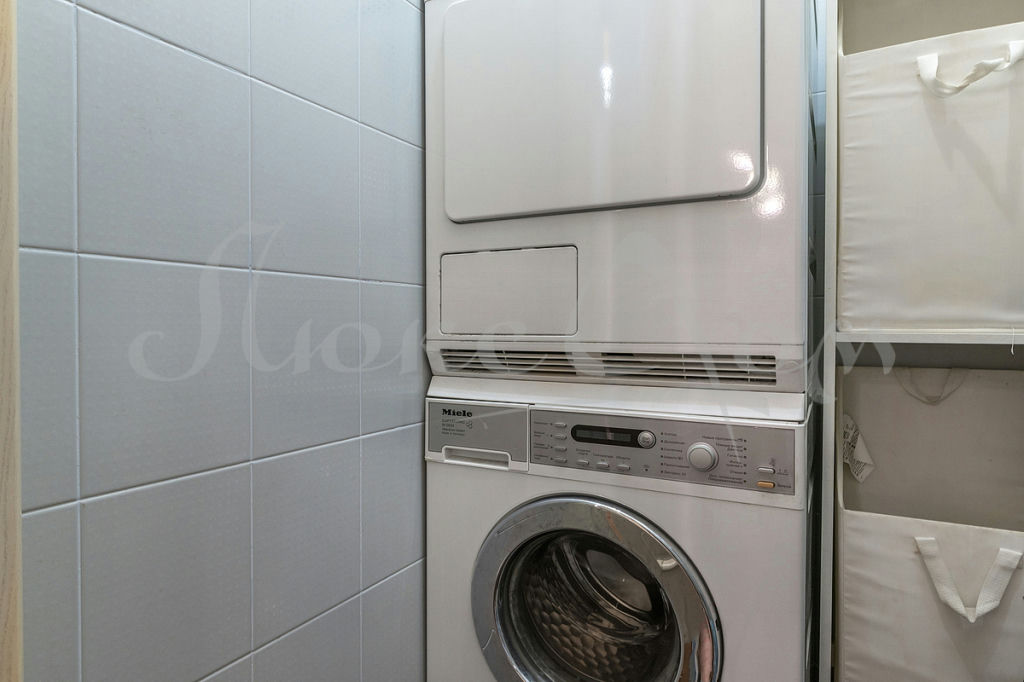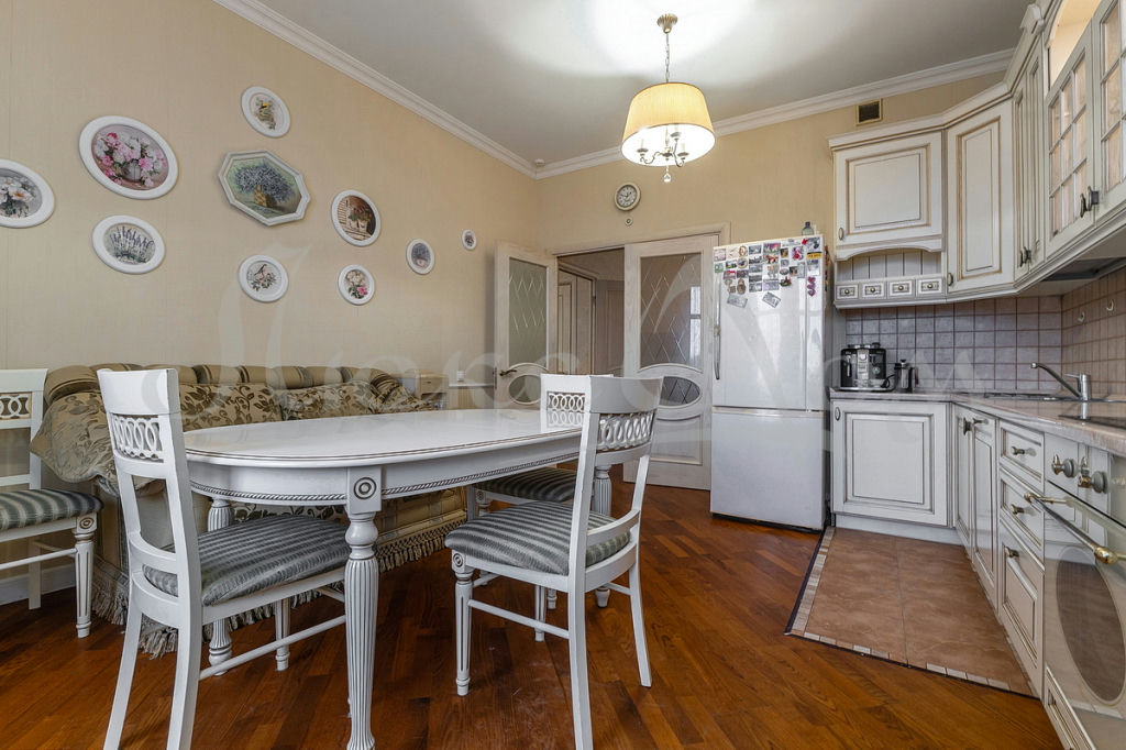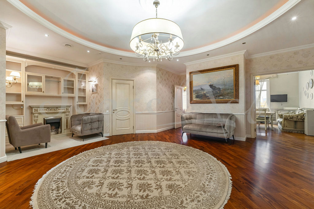 Выполнена отделка с использованием натуральных материалов на полу выложен дубовый паркет и плитка Emperador, столешница на кухне изготовлена из мрамора. Установлены теплые полы, система кондиционирования, хорошая шумоизоляция в квартире.